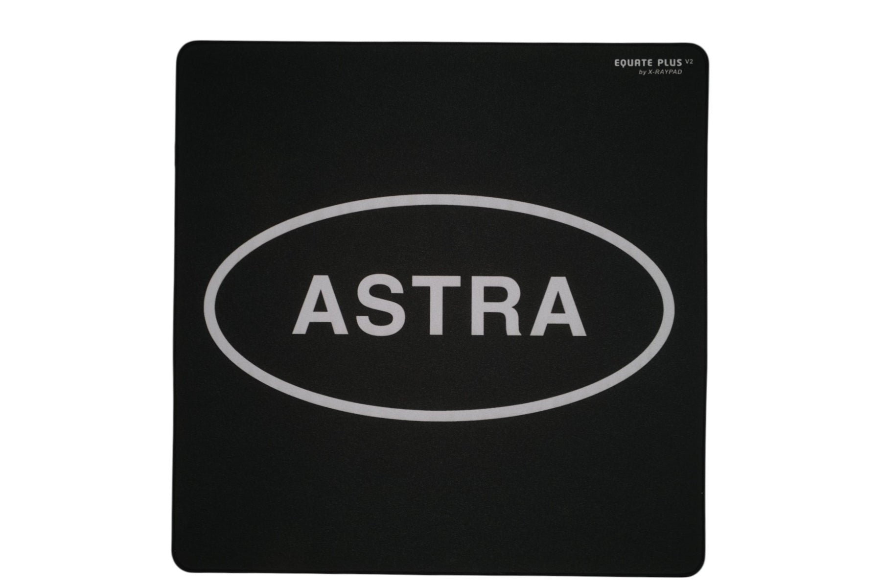 The ASTRA mouse pad features a deep black surface with a bold white oval framing the Astra name at the center. The high-contrast design creates a simple but striking look that stands out on any desk while maintaining a sleek, modern aesthetic.